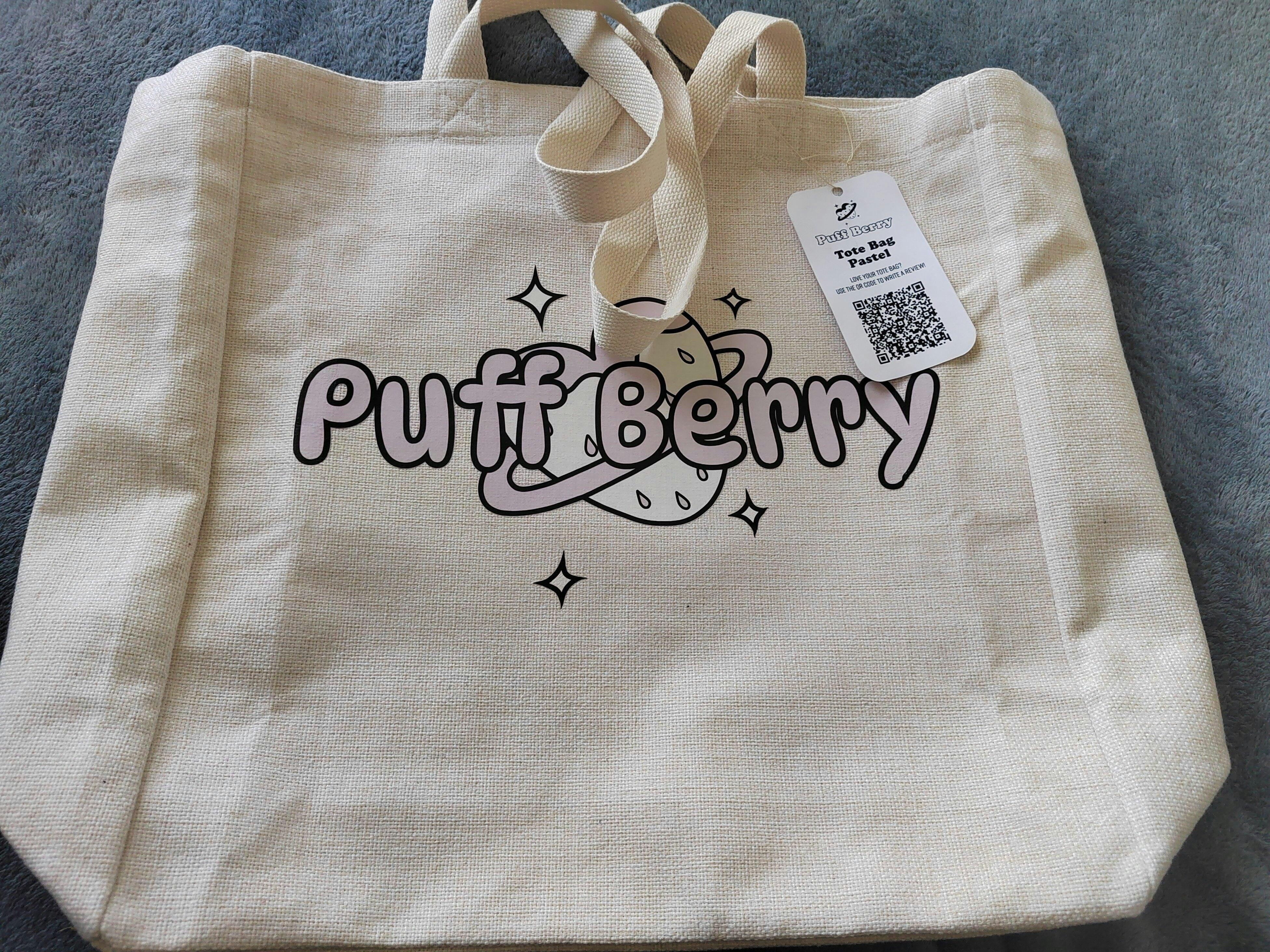 "Carry your essentials in style with the Puff Berry Tote Bag, featuring a playful Puff Berry logo. Perfect for adding a touch of quirkiness to any outfit. (Berry cute!)"